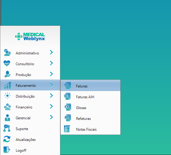 Para acessar esse recurso vá em: Iniciar do Medical-> Faturamento -> Notas Fiscais