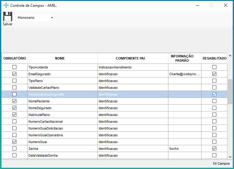 Os campos marcados como obrigatórios e como desabilitados ao mesmo tempo devem possuir uma informação padrão. Já os campos do Tiss devem ser obrigatórios ou devem possuir uma informação padrão.