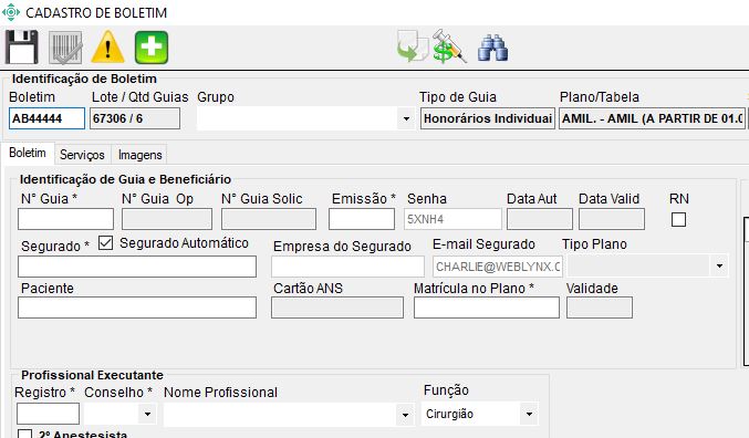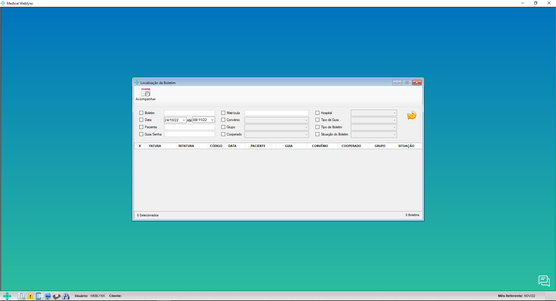 Agora é possível buscar um boletim em qualquer tela do sistema através do botão de busca no menu da barra do programa Medical Weblynx.